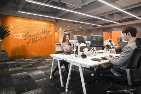 SK텔레콤은 2월 5G 스마트오피스를 서울 센트로폴리스 빌딩에서 선보인 바 있다. 출입카드 대신 안면인식 AI를 활용한 5G 워킹스루(Walking through)시스템, PC가 필요 없는 모바일 VDI 도킹 시스템 등 SK텔레콤이 보유한 5G · AI 등 핵심 ICT 기술을 집약해 최고의 환경을 구현했다는 평가를 받았다.