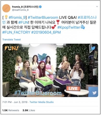 프로미스나인 트위터 공식 계정(@realfromis_9)에서 확인할 수 있는 트위터블루룸 라이브 Q&A 방송 트윗은 20만명에 달하는 누적 시청자 수를 기록했고, 오디오 게스트와의 라이브는 7만2000명의 총시청자 수를 기록했다.