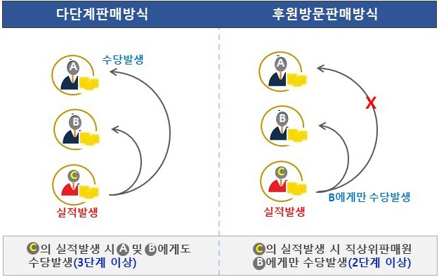 불법적인 업체들은 후원방문판매원으로 가입 시 ‘고수익 보장’, ‘단시간 성공’ 등의 문구로 현혹하거나, 대리점 개설을 권유하는 등 대부분 사기업체이거나, 불법 업체 가능성이 높으니 주의해야 한다.